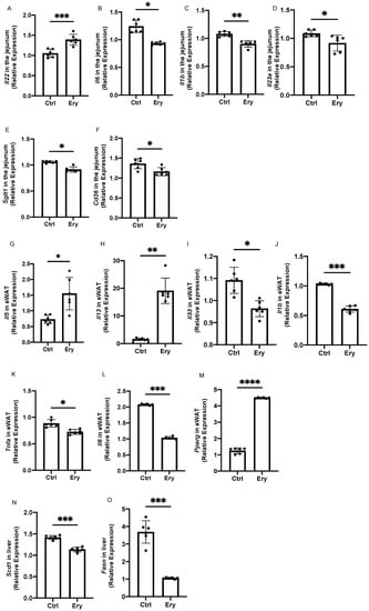 2.9. Erythritol Increased the Expression of Genes Encoding Cytokines Secreted by ILC2s and Decreased the Expression of Inflammation-Related Genes in the eWAT