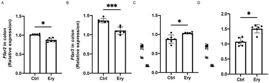 2.10. Erythritol Decreased Ffar2 and Ffar3 Expression in the Colon and Increased it in the eWAT
