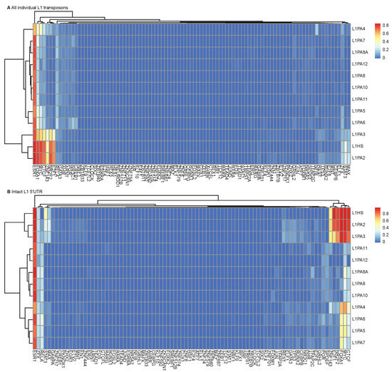 - Brouha, B.; Schustak, J.; Badge, R.M.; Lutz-Prigge, S.; Farley, A.H.; Moran, J.V.; Kazazian, H.H. Hot L1s account for the bulk of retrotransposition in the human population. Proc. Natl. Acad. Sci. USA 2003, 100, 5280–5285. [Google Scholar] [CrossRef] [PubMed]