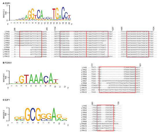 | L1 Subfamily | ESR1 | FOXA1 | E2F1 | |||