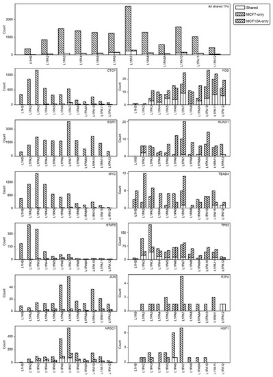 2.2. L1 Transposons Contain Abundant TFBSs in MCF7 Cells