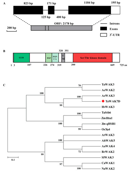 2.2. Sequence and Phylogenetic Analyses of TaWAK7D