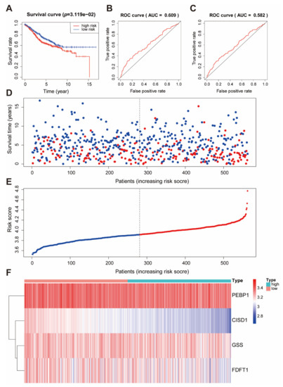 Ferroptosis risk score = −0.08318 × ISD1 − 0.01483 × GSS − 0.02273 × FDFT1 + 0.00441 × PEBP1