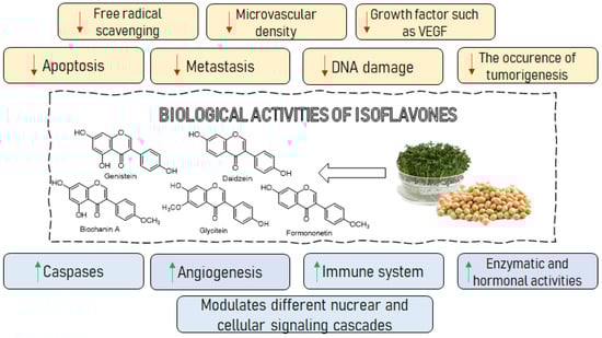 It was speculated that isoflavones may act as anti-inflammatory agents because they can down-regulate cytokine-induced signal transduction [] (Figure 4).