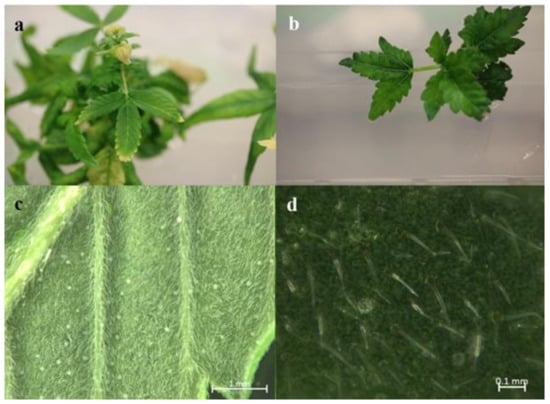 - Deguchi, M.; Bogush, D.; Weeden, H.; Spuhler, Z.; Potlakayala, S.; Kondo, T.; Zhang, Z.J.; Rudrabhatla, S. Establishment and optimization of a hemp (Cannabis sativa L.) agroinfiltration system for gene expression and silencing studies. Sci. Rep. 2020, 10, 3504. [Google Scholar] [CrossRef] [PubMed]
