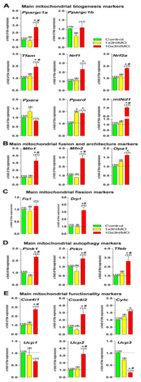 | Cox4i1 | 1.0 ± 0.02 | 1.15 ± 0.02 | 2.75 *,# ± 0.17 ![]() | |