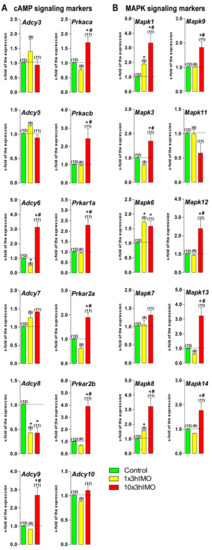 | Mapk8 | 1.0 ± 0.01 | 1.56 * ± 0.03 ![]() | 3.22 *,# ± 0.56 ![]() | |