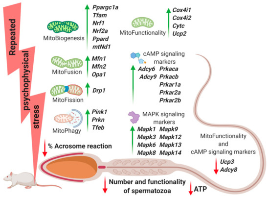 2.3. Transcriptional Profiles of Signaling Molecules Regulating Mitochondrial Dynamics and Functionality as Well as Number and Functionality of Spermatozoa, All of Which Are Important for Fertility, Are Dramatically Changed in Spermatozoa from Stressed Rats