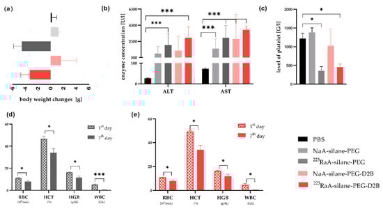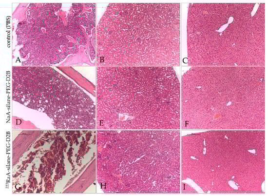 4.10. Toxicity Studies of 223RaA-Silane-PEG and 223RaA-Silane-PEG-D2B in BALB/c Mice