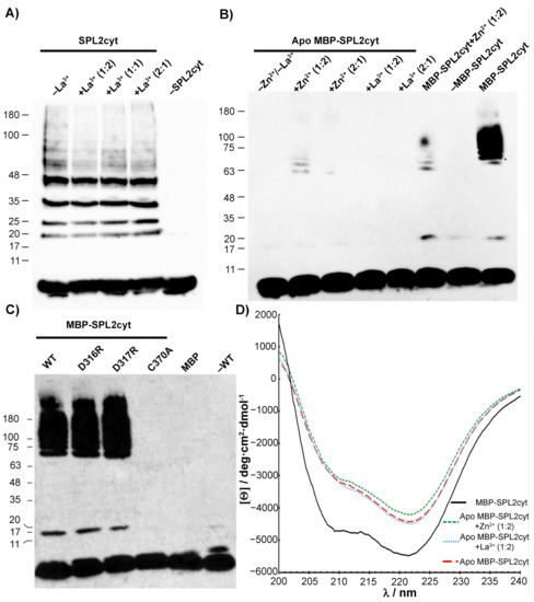2.3. CD Measurements and Metal Binding of SPL2cyt and Its Mutants