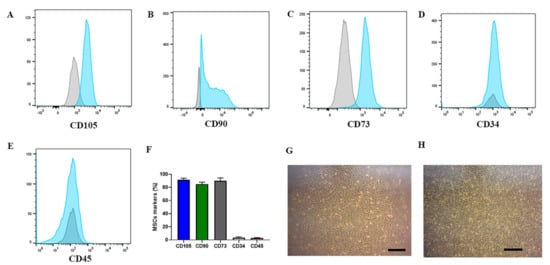 - Dominici, M.; Le Blanc, K.; Mueller, I.; Slaper-Cortenbach, I.; Marini, F.C.; Krause, D.S.; Deans, R.J.; Keating, A.; Prockop, D.J.; Horwitz, E.M. Minimal criteria for defining multipotent mesenchymal stromal cells. The International Society for Cellular Therapy position statement. Cytotherapy 2006, 8, 315–317. [Google Scholar] [CrossRef] [PubMed]