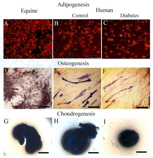 4.7. Adipogenic, Osteogenic, and Chondrogenic Differentiation of Equine and Human iPSC-Derived MSCs