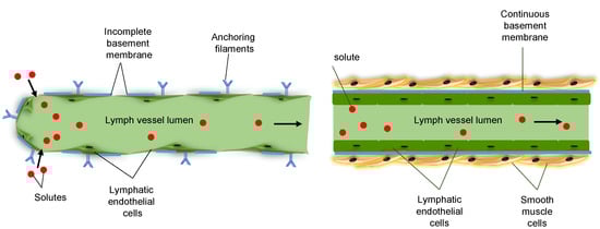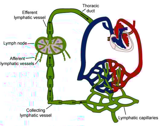 - Schineis, P.; Runge, P.; Halin, C. Cellular traffic through afferent lymphatic vessels. Vasc. Pharmacol. 2019, 112, 31–41. [Google Scholar] [CrossRef]