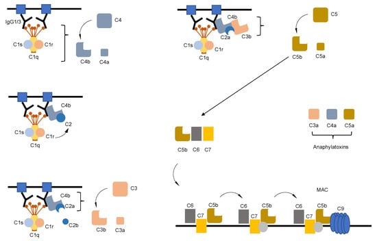 - Dalakas, M.C.; Alexopoulos, H.; Spaeth, P.J. Complement in neurological disorders and emerging complement-targeted therapeutics. Nat. Rev. Neurol. 2020, 16, 601–617. [Google Scholar] [CrossRef] [PubMed]
