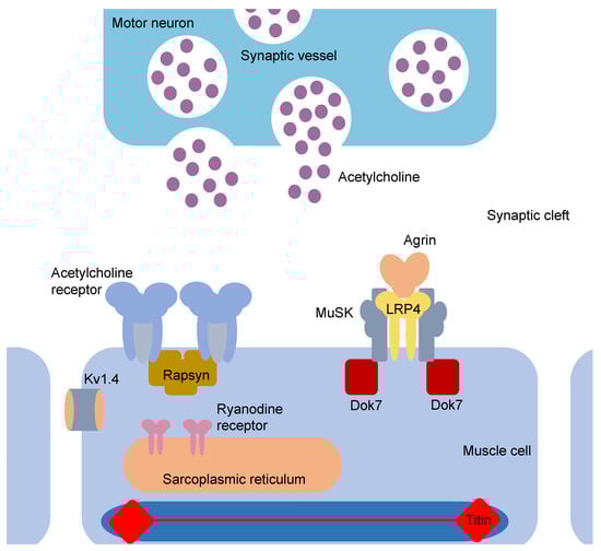 - Yumoto, N.; Kim, N.; Burden, S.J. Lrp4 is a retrograde signal for presynaptic differentiation at neuromuscular synapses. Nature 2012, 489, 438–442. [Google Scholar] [CrossRef]