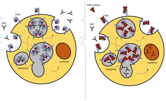 - Kiessling, P.; Lledo-Garcia, R.; Watanabe, S.; Langdon, G.; Tran, D.; Bari, M.; Christodoulou, L.; Jones, E.; Price, G.; Smith, B.; et al. The FcRn inhibitor rozanolixizumab reduces human serum IgG concentration: A randomized phase 1 study. Sci. Transl. Med. 2017, 9, eaan1208. [Google Scholar] [CrossRef] [PubMed]