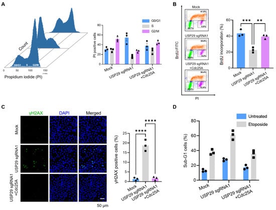 2.4. Loss of USP29 Leads to Cdc25A-Mediated Cell Cycle Arrest and Induces Apoptosis