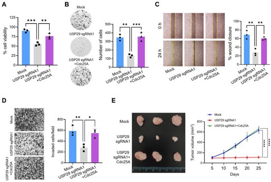 2.5. Knockdown of USP29 Reduces Cdc25A-Dependent Cancer Growth In Vitro and In Vivo