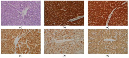 - Chan, E.S.; Yeh, M.M. The use of immunohistochemistry in liver tumors. Clin. Liver Dis. 2010, 14, 687–703. [Google Scholar] [CrossRef]