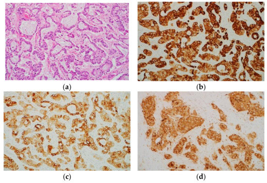 - Maitra, A.; Murakata, L.A.; Albores-Saavedra, J. Immunoreactivity for hepatocyte paraffin 1 antibody in hepatoid adenocarcinomas of the gastrointestinal tract. Am. J. Clin. Pathol. 2001, 115, 689–694. [Google Scholar] [CrossRef]