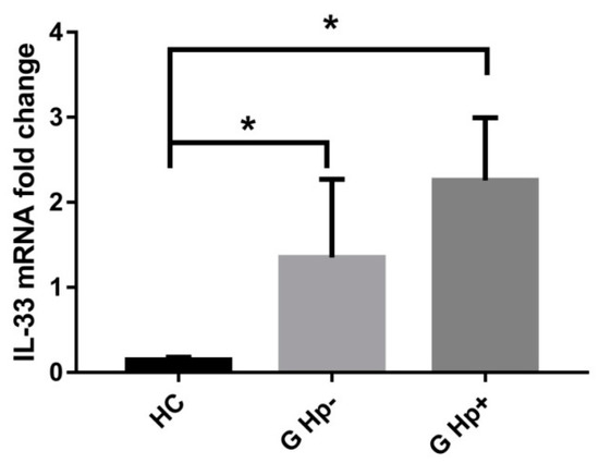 2.1. IL-33 Is Expressed in Gastric Cell Lines and Its Expression Is Increased in Chronic Gastritis