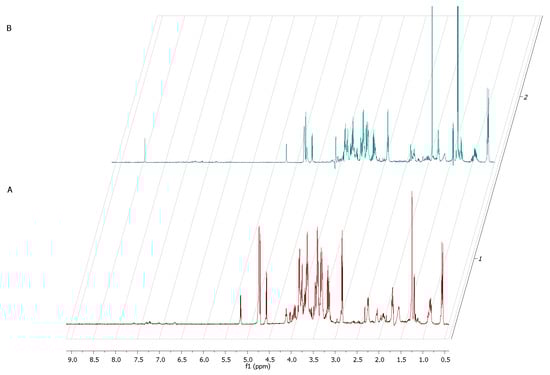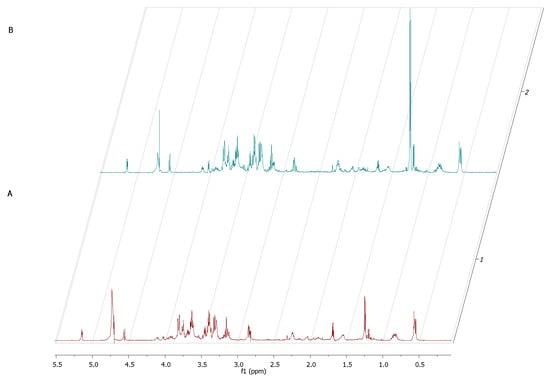NMR spectra of the samples were recorded using Avance II spectrometer (Bruker GmBH, Bremen, Germany) operating at a proton frequency of 600.58 MHz. All sample spectra were recorded at 300 K by CPMG pulse sequence with water presaturation (Burker notation). For each sample, 256 following scans were collected, relaxation delay of 3.5 s; acquisition time of 2.73 s; TD of 65k; line broadening of 0.3 Hz; SW of 20.01 ppm. The spectra were manually processed—phased and baseline was corrected by Topspin 3.2 software (Bruker GmBH, Bremen, Germany) and referenced to the TSP resonance signal at δ = 0.000 ppm. All spectra were normalized by constant sum. The NMR measured metabolites were obtained as signal integrals of non-overlapping resonances or a cluster of partly overlapping resonances. The metabolites were identified by assignments published in the literature and using Chenomx Profiler. All acquired variables were scaled to unit standard deviation.