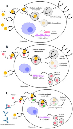 - Maxwell, K.N.; Fisher, E.A.; Breslow, J.L. Overexpression of PCSK9 Accelerates the Degradation of the LDLR in a Post-Endoplasmic Reticulum Compartment. Proc. Natl. Acad. Sci. USA 2005, 102, 2069–2074. [Google Scholar] [CrossRef]