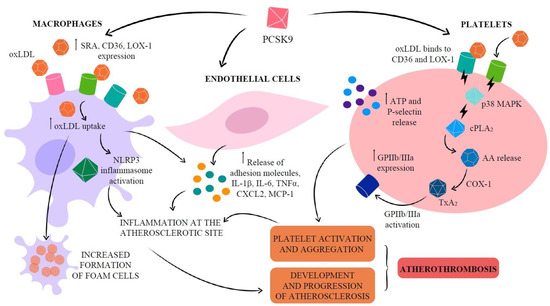 - Qi, Z.; Hu, L.; Zhang, J.; Yang, W.; Liu, X.; Jia, D.; Yao, Z.; Chang, L.; Pan, G.; Zhong, H.; et al. PCSK9 (Proprotein Convertase Subtilisin/Kexin 9) Enhances Platelet Activation, Thrombosis, and Myocardial Infarct Expansion by Binding to Platelet CD36. Circulation 2021, 143, 45–61. [Google Scholar] [CrossRef]