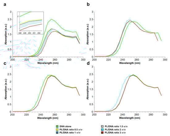2.4. DNA Absorption Spectrum after PL Proteins Addition
