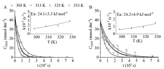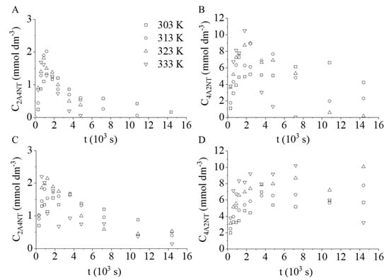 - Rajashekharam, M.V.; Nikalje, D.D.; Jaganathan, R.; Chaudhari, R.V. Hydrogenation of 2,4-Dinitrotoluene Using a Pd/Al2O3 Catalyst in a Slurry Reactor: A Molecular Level Approach to Kinetic Modeling and Nonisothermal Effects. Ind. Eng. Chem. Res. 1997, 36, 592–604. [Google Scholar] [CrossRef]