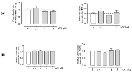 2.4. AZ67 Does Not Inhibit L-Lactate Production, Nor ATP Levels in Activated HAOECs