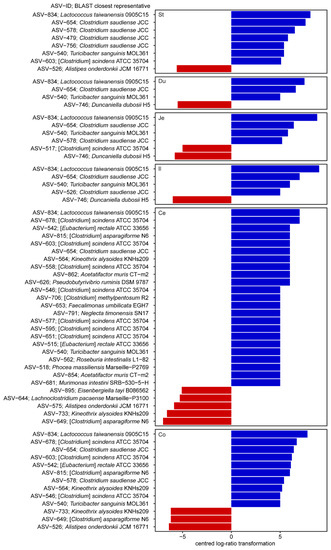 30. Lagkouvardos, I.; Pukall, R.; Abt, B.; Foesel, B.U.; Meier-Kolthoff, J.P.; Kumar, N.; Bresciani, A.; Martínez, I.; Just, S.; Ziegler, C. The Mouse Intestinal Bacterial Collection (miBC) provides host-specific insight into cultured diversity and functional potential of the gut microbiota. Nat. Microbiol. 2016, 1, 16131. [Google Scholar] [CrossRef] [PubMed]