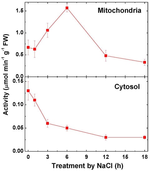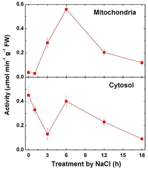 Eprintsev, A.T.; Fedorin, D.N.; Cherkasskikh, M.V.; Igamberdiev, A.U. Effect of Salt Stress on the Expression and Promoter Methylation of the Genes Encoding the Mitochondrial and Cytosolic Forms of Aconitase and Fumarase in Maize. Int. J. Mol. Sci. 2021, 22, 6012. https://doi.org/10.3390/ijms22116012