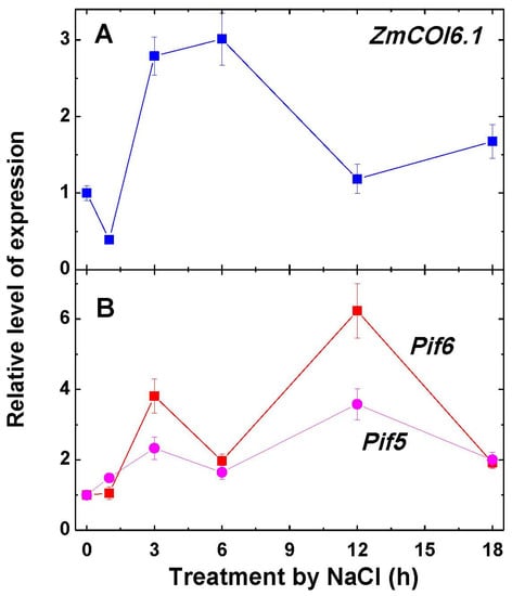 2.4. Expression of ZmCOI6.1, Pif5 and Pif6
