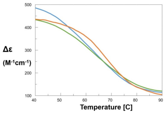 - Del Villar-Guerra, R.; Gray, R.D.; Chaires, J.B. Characterization of Quadruplex DNA Structure by Circular Dichroism. Curr. Protoc. Nucleic Acid Chem. 2017, 68, 17.8.1–17.8.16. [Google Scholar] [CrossRef]