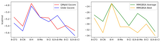 | MD Source | Time (ns) | 8-CF3 | 8-CN | 8-H | 8-Me | 9-Cl | 8.9-di-Me | 8-Cl | 8,9-di-Cl |