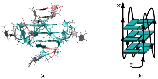 - Siddiqui-Jain, A.; Grand, C.L.; Bearss, D.J.; Hurley, L.H. Direct evidence for a G-quadruplex in a promoter region and its targeting with a small molecule to repress c-MYC transcription. Proc. Natl. Acad. Sci. USA 2002, 99, 11593–11598. [Google Scholar] [CrossRef] [PubMed]