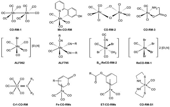 Structures of selected well-known nonmetallic CO-releasing molecules [129,130,131,132].