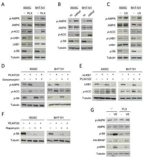 - Zheng, B.; Jeong, J.H.; Asara, J.M.; Yuan, Y.; Granter, S.R.; Chin, L.; Cantley, L.C. Oncogenic B-RAF negatively regulates the tumor suppressor LKB1 to promote melanoma cell proliferation. Mol. Cell. 2009, 33, 237–247. [Google Scholar] [CrossRef] [PubMed]