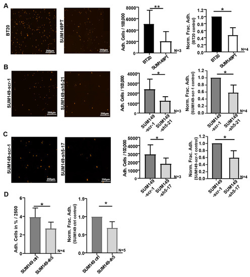 2.2. BT20, SUM149PT, SUM149-Scr-1 and SUM149-sh5-21 Cells Express VE-, E- and N-Cadherin on the Cell Surface