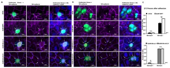 2.9. BT20, SUM149PT, SUM149-Scr-1 and SUM149-sh5-21 Cells Interact With Endothelial VE-Cadherin during Incorporation