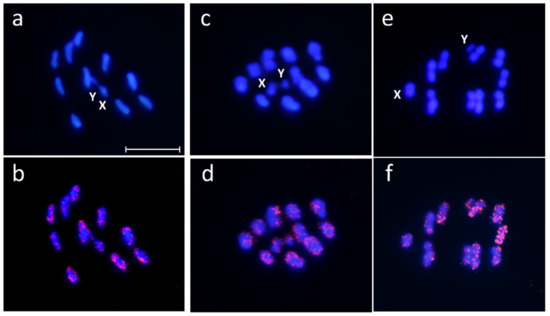 - Utsunomia, R.; Silva, D.; Ruíz-Ruano, F.J.; Goes, C.; Melo, S.; Ramos, L.P.; Oliveira, C.; Porto-Foresti, F.; Foresti, F.; Hashimoto, D.T. Satellitome landscape analysis of Megaleporinus macrocephalus (Teleostei, Anostomidae) reveals intense accumulation of satellite sequences on the heteromorphic sex chromosome. Sci. Rep. 2019, 9, 5856. [Google Scholar] [CrossRef]
