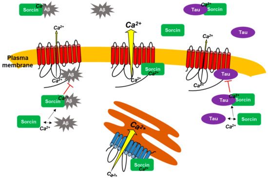 - Kim, S.I.; Lee, H.J.; Kim, S.S.; Kwon, Y.S.; Chun, W. Sequestration of sorcin by aberrant forms of tau results in the defective calcium homeostasis. Korean J. Physiol. Pharmacol. 2016, 20, 387–397. [Google Scholar] [CrossRef][Green Version]