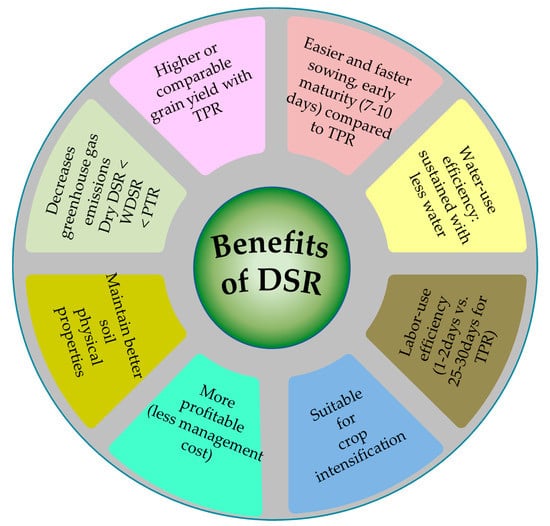 - Kumar, V.; Ladha, J.K. Direct Seeding of Rice. Recent Developments and Future Research Needs. Adv. Agron. 2011, 111. [Google Scholar] [CrossRef]