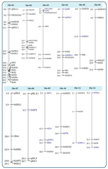 - Obara, M.; Tamura, W.; Ebitani, T.; Yano, M.; Sato, T.; Yamaya, T. Fine-mapping of qRL6.1, a major QTL for root length of rice seedlings grown under a wide range of NH4+ concentrations in hydroponic conditions. Theor. Appl. Genet. 2010, 121. [Google Scholar] [CrossRef] [PubMed]