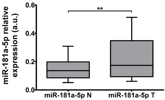2.2. The Expression of miR-181a-5p Is Upregulated in Tumor Tissue