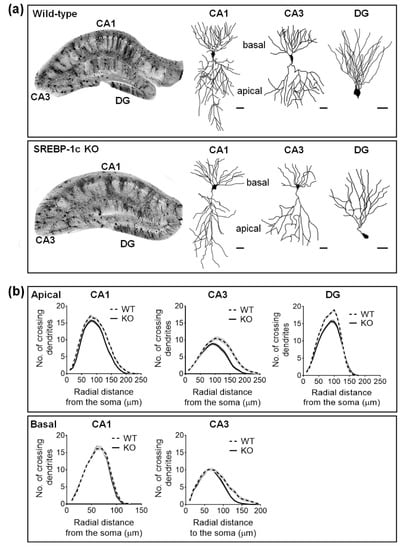 2.2. SREBP-1c KO Mice Display Altered Dendritic Morphology in the Hippocampus