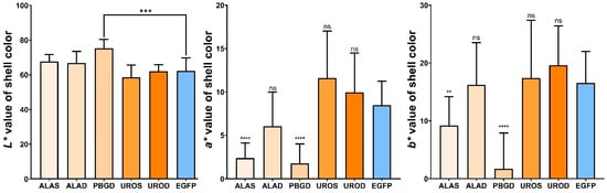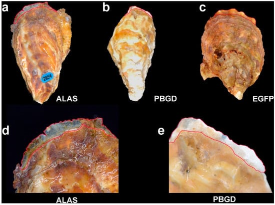 - Mao, J.; Zhang, Q.; Yuan, C.; Zhang, W.; Hu, L.; Wang, X.; Liu, M.; Han, B.; Ding, J.; Chang, Y. Genome-wide identification, characterisation and expression analysis of the ALAS gene in the Yesso scallop (Patinopecten yessoensis) with different shell colours. Gene 2020, 757, 144925. [Google Scholar] [CrossRef]