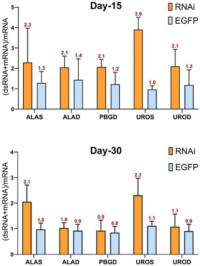 2.4. Efficiency of RNAi on the Target Gene Transcription