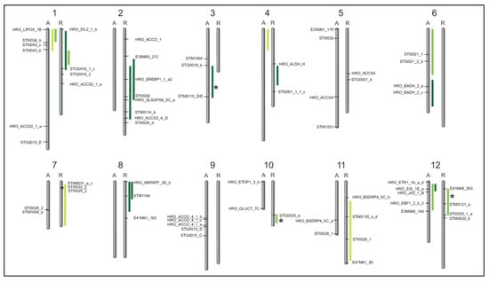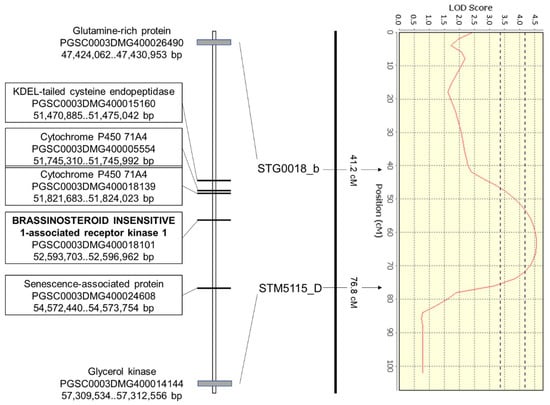 - Massa, A.N.; Manrique-Carpintero, N.C.; Coombs, J.; Haynes, K.G.; Bethke, P.C.; Brandt, T.L.; Gupta, S.K.; Yencho, G.C.; Novy, R.G.; Douches, D.S. Linkage analysis and QTL mapping in a tetraploid russet mapping population of potato. BMC Genet. 2018, 19, 87. [Google Scholar] [CrossRef]